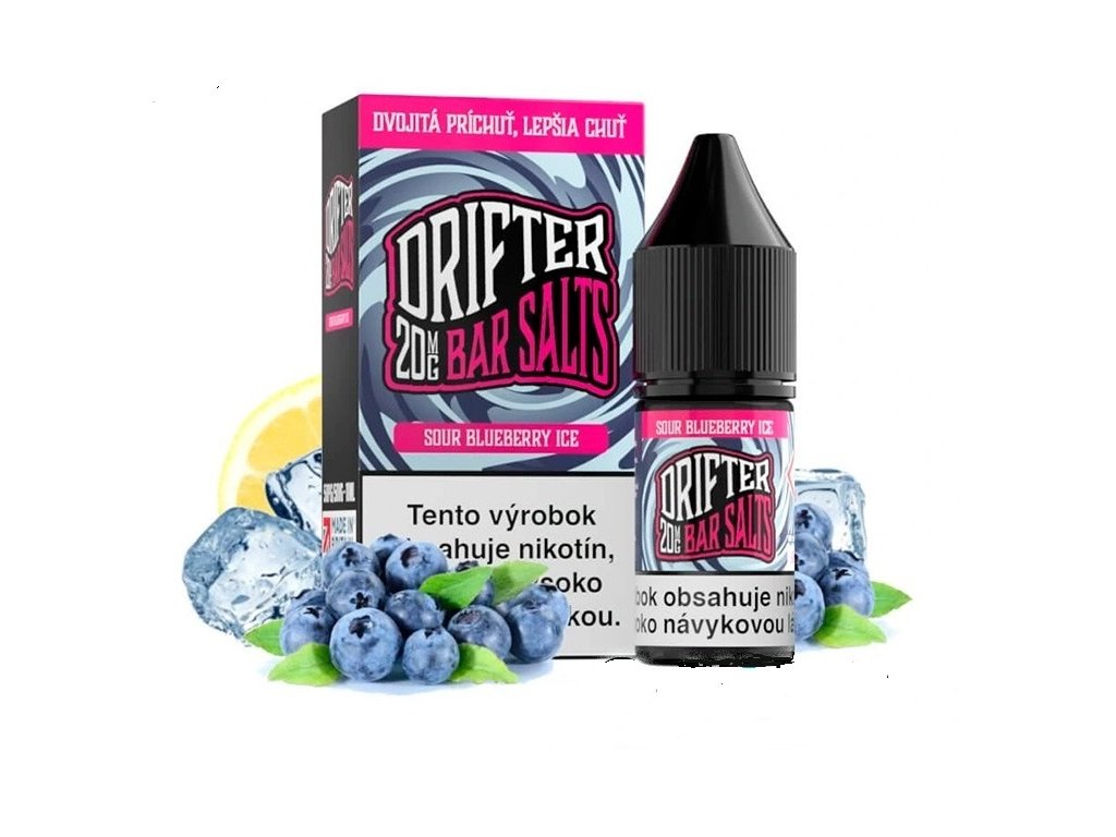 E-liquid DRIFTER Bar Salt Sour Blueberry ICE ponúka výraznú chuť kyslých čučoriedok v kombinácii so sviežym chladivým efektom. Ide o ovocnú a mentolovú kategóriu chuti, ktorá je vhodná pre milovníkov osviežujúcich a výrazných príchutí.