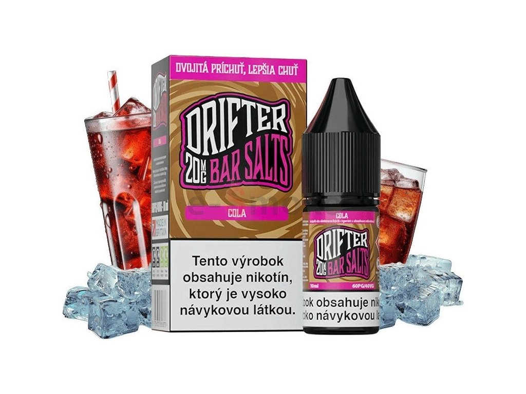 E-liquid DRIFTER Bar Salts Cola ponúka autentickú chuť klasickej koly v kompaktnom balení. Táto príchuť patrí do kategórie sladkých e-liquidov a je vhodná pre milovníkov osviežujúcich nápojových tónov. Ideálna voľba na celodenné vapovanie.
