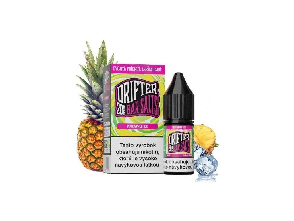 DRIFTER Bar Salts Pineapple Ice, ovocná e-liquid príchuť s chladivým nádychom, objem 10 ml, obsah nikotínu 20 mg/ml, nikotínová soľ.