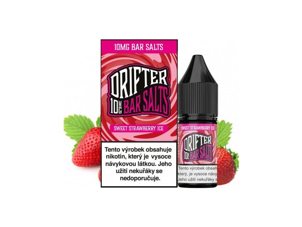DRIFTER Bar Salts Sweet Strawberry Ice, ovocná príchuť s ľadom, 10 ml e-liquid, 20 mg/ml nikotínu, intenzívna chuť jahody a mentolu.