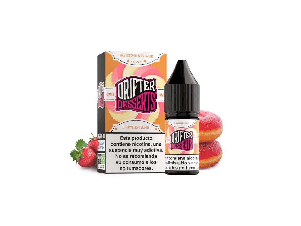 DRIFTER Desserts Salt Strawberry Donut je sladká príchuť v objeme 10 ml, nikotínová soľ, obsah nikotínu 20 mg/ml, ideálna pre milovníkov dezertov.