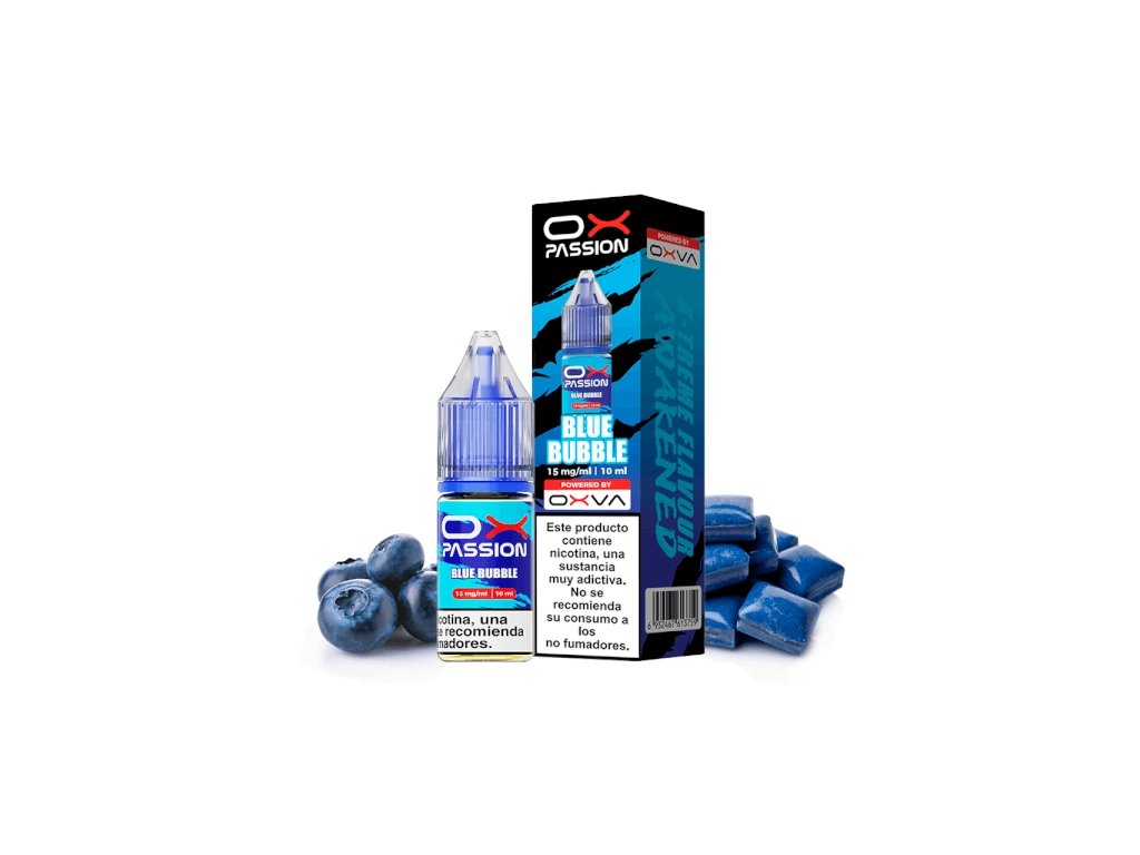 Oxva OX Passion Salts Blue Bubble s ovocnou príchuťou v objeme 10 ml, nikotínová soľ 10,15 alebo 20 mg/ml, ideálna na jemné a osviežujúce vapovanie.