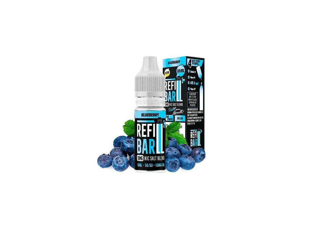 REFILL BAR Salts Blueberry s ovocnou príchuťou, 10 ml, nikotínová soľ, 20 mg/ml – lahodná chuť čučoriedok a hladký zážitok.