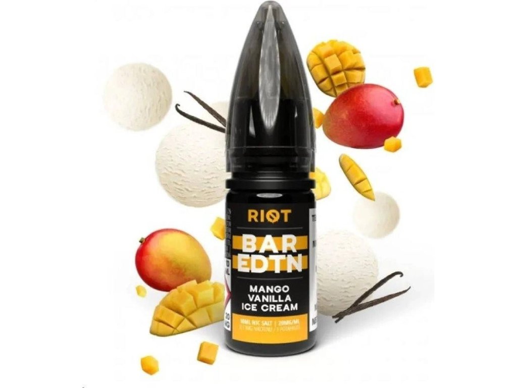 E-liquid RIOT Bar Mango Vanilla Ice Cream ponúka kombináciu zrelého manga a jemnej vanilkovej zmrzliny. Táto sladká príchuť je určená pre milovníkov ovocno-krémových zážitkov. Kategória chuti: sladká.